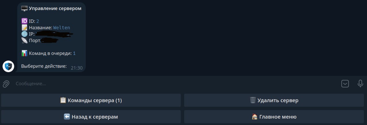 Далее, у вас появится список с только что рожденным сервером в нём. После перехода в подраздел сервера становятся доступны базовые механики взаимодействия, такие как: просмотр команд, удаление, главное меню, а также возврат на шаг выше, что делает ваш experience работы намного (наиболее) лучше.